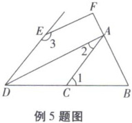 例 5 如图所示,已知 $\angle 1 = \angle BDE$,$\angle 2 + \angle 3 = 180^{\circ}$。