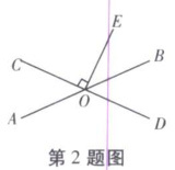 2. (2020 孝感)如图所示,直线 AB,CD 相交于点 O,$OE⊥CD$,垂足为点 O. 若$∠BOE= 40^{\circ }$,则$∠AOC$的度数为 (