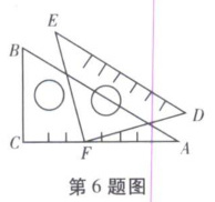 6. (2021 宜昌)如图所示,将一副三角尺按图中所示位置摆放,点 F 在 AC 上,其中$∠ACB= 90^{\circ },∠ABC= 60^{\circ },∠EFD= 90^{\circ },∠DEF= 45^{\circ },AB// DE$,则$∠AFD$的度数是 (