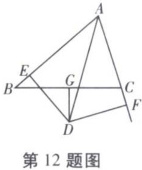 12. 如图所示,在 $ \triangle A B C $ 中,$ A D $ 平分 $ \angle B A C $,$ D G \perp B C $ 且平分 $ B C $,$ D E \perp A B $ 于 $ E $,$ D F \perp A C $ 于 $ F $。