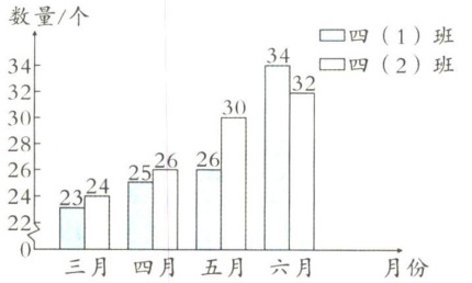 )月收的矿泉水瓶最多。(2)四(2)班平均每月回收多少个矿泉水瓶?