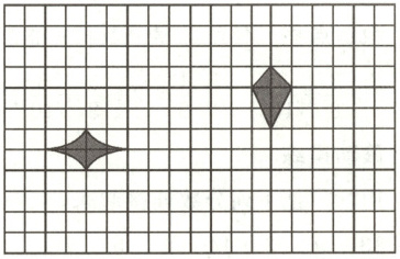 以左下角菱形的右下顶点为旋转中心,将菱形顺时针旋转$90^{\circ}$,得到一个新的菱形位置;再以同样的旋转中心,继续顺时针旋转$90^{\circ}$,又得到一个位置;再旋转$90^{\circ}$完成一圈。对于右上角的菱形也采用类似的操作,通过不断旋转可以得到更多重复的图形,从而组合成美丽的图案。