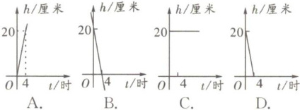 3. 一支蜡烛长 20 厘米,点燃后每小时燃烧 5 厘米,燃烧时剩下的高度$h$(厘米)与燃烧时间$t$(时)的函数关系的图象是 (