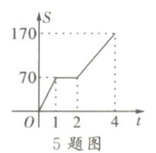 5. 某工程队正在对一湿地公园进行绿化,中间休息了一段时间,已知绿化面积$S(m^2)与工作时间t(h)$的函数关系的图象如图所示,则休息后工程队每小时绿化面积为____$m^2$。