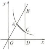 23. 已知点$A(1,a)$,点$B的横坐标为m(m > 1)均在正比例函数y = 2x$的图象上,反比例函数$y = \frac{k}{x}的图象经过点A$,过点$B作BD \perp x轴于点D$,交反比例函数$y = \frac{k}{x}的图象于点C$,连结$AC$。
