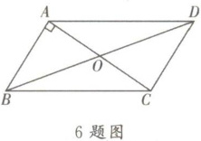 6. 如图,四边形$ABCD$是平行四边形,$O是对角线AC与BD$的交点,$AB⊥AC$,若$AB= 8$,$AC= 12$,则$BD$的长是____.