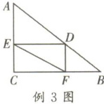 例 3 如图,在 Rt△ABC 中,∠C= 90°,AC= 6,BC= 8,点 D 在 AB 边上,DE⊥AC,DF⊥BC,垂足分别为 E,F,连结 EF,则线段 EF 的最小值为____.