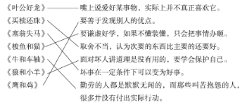 《中国古代寓言》《伊索寓言》《克雷洛夫寓言》你都读过了吗?这些小故事里都包含着大道理。照样子,连一连。