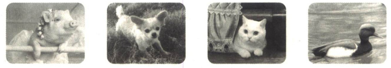 【解析】:题目要求根据插图中的动物进行“配音”,也就是模拟它们可能发出的声音。根据常识,猪通常发出“哼哼”的声音,狗通常发出“汪汪”的声音,猫通常发出“喵喵”的声音,鸭子通常发出“嘎嘎”的声音。