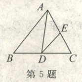 5. 如图,在$\triangle ABC$中,$\angle B+\angle C = 110^{\circ}$,$AD平分\angle BAC$,交$BC于D$,$DE// AB$,则$\angle ADE$的度数为(