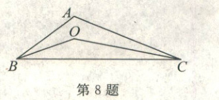 8. 如图,$△ABC的角平分线BO$、$CO相交于点O$,$∠A= 120^{\circ }$,则$∠BOC= $