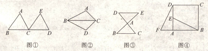 (1) 在图④中,可以通过平行移动、翻折、旋转中的哪一种方式怎样变化,使$\triangle ABE变到\triangle ADF$的位置;