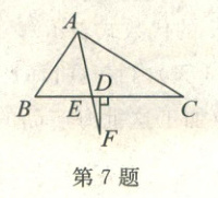 7. 如图,已知$AF平分\angle BAC$,过$F作FD\perp BC$,若$\angle B比\angle C大16^{\circ}$,则$\angle F$的度数是