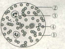 【解析】:在显微镜下观察人血涂片时,白细胞体积最大,有细胞核;红细胞数量最多,呈两面凹的圆饼状,无细胞核;血小板体积最小,形状不规则,无细胞核;血浆为淡黄色半透明的液体。假设图中①为红细胞,②为白细胞,③为血小板,④为血浆,那么表示白细胞的是②。