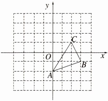 23. 图中的小方格都是边长为 $ 1 $ 的正方形,$ \triangle ABC $ 的顶点坐标分别为 $ A(0,-2) $,$ B(3,-1) $,$ C(2,1) $.