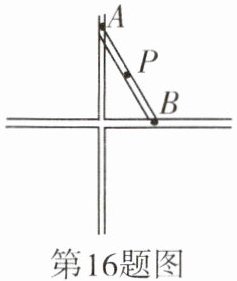 16. 一个数学家曾经设计过一种圆规如图所示,有两个互相垂直的滑槽(滑槽宽度忽略不计),一根没有弹性的木棒的两端 $A$,$B$ 能在滑槽内自由滑动,将笔插入位于木棒中点 $P$ 处的小孔中,随着木棒的滑动就可以画出一个圆来.若 $AB = 20\mathrm{cm}$,则画出的圆的半径为______