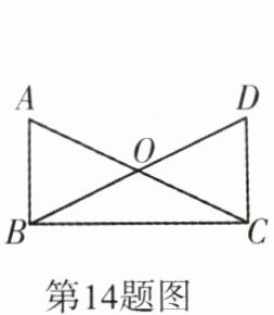 14. 如图,$AB = CD$,$BD = AC$,且 $BD$,$AC$ 相交于点 $O$,$AB// CD$,若 $AC = 8$,则$BO= $