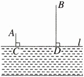 位置:作点$A$关于河流$l$的对称点$A'$,连接$A'B$,与$CD$交于点$M$,则$M$为自来水厂的位置;