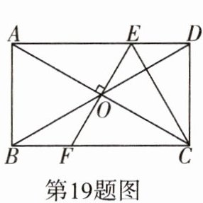 19. 如图,矩形 ABCD 的周长为 20 cm,两条对角线相交于点 O,过点 O 作 AC 的垂线 EF,分别交 AD,BC 于点 E,F,连接 CE,则$△CDE$的周长为