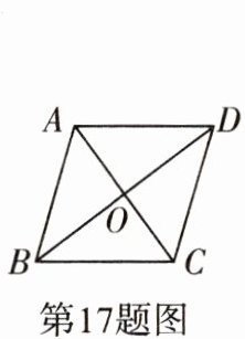17. 如图,菱形 ABCD 的周长为$8\sqrt {5}$,对角线 AC 和 BD 相交于点 O,$AC:BD= 1:2$,则菱形 ABCD 的面积$S= $
