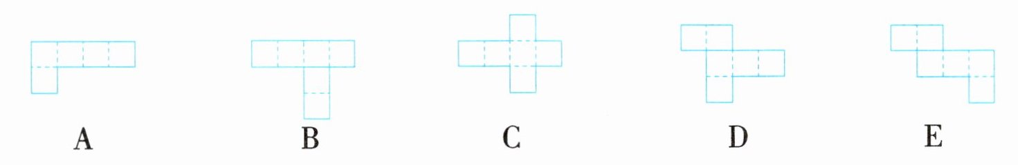 E:属于“2-2-2”型(每行2个正方形,共3行),是正方体展开图的一种,能围成正方体。