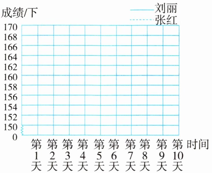 四、刘丽和张红为了参加 1 分钟跳绳比赛,提前 10 天进行训练,每天测试成绩如下表,根据下表回答问题。