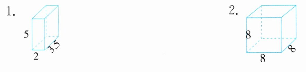 1. $69cm^{2}$ $35cm^{3}$ 2. $384cm^{2}$ $512cm^{3}$