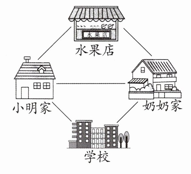 答:有3条路可走,小明直接到奶奶家最近,因为两点之间线段最短(或三角形任意两边之和大于第三边)。