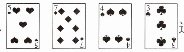 所给扑克牌的点数分别为$5$、$7$、$4$、$3$,下面写出两道算式: