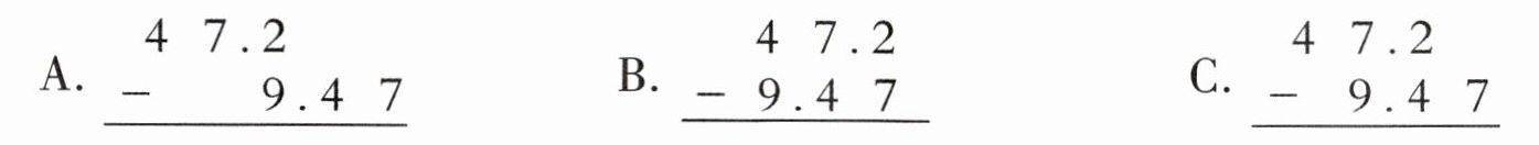 选项A中,$9.47$的$4$没有和$47.2$的$7$对齐,数位没有对齐,所以该选项错误。