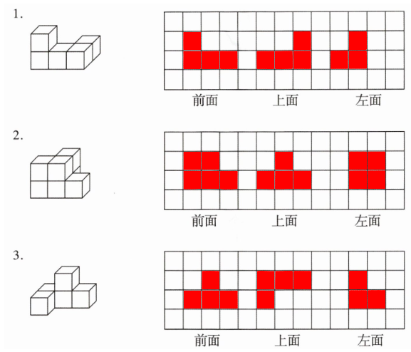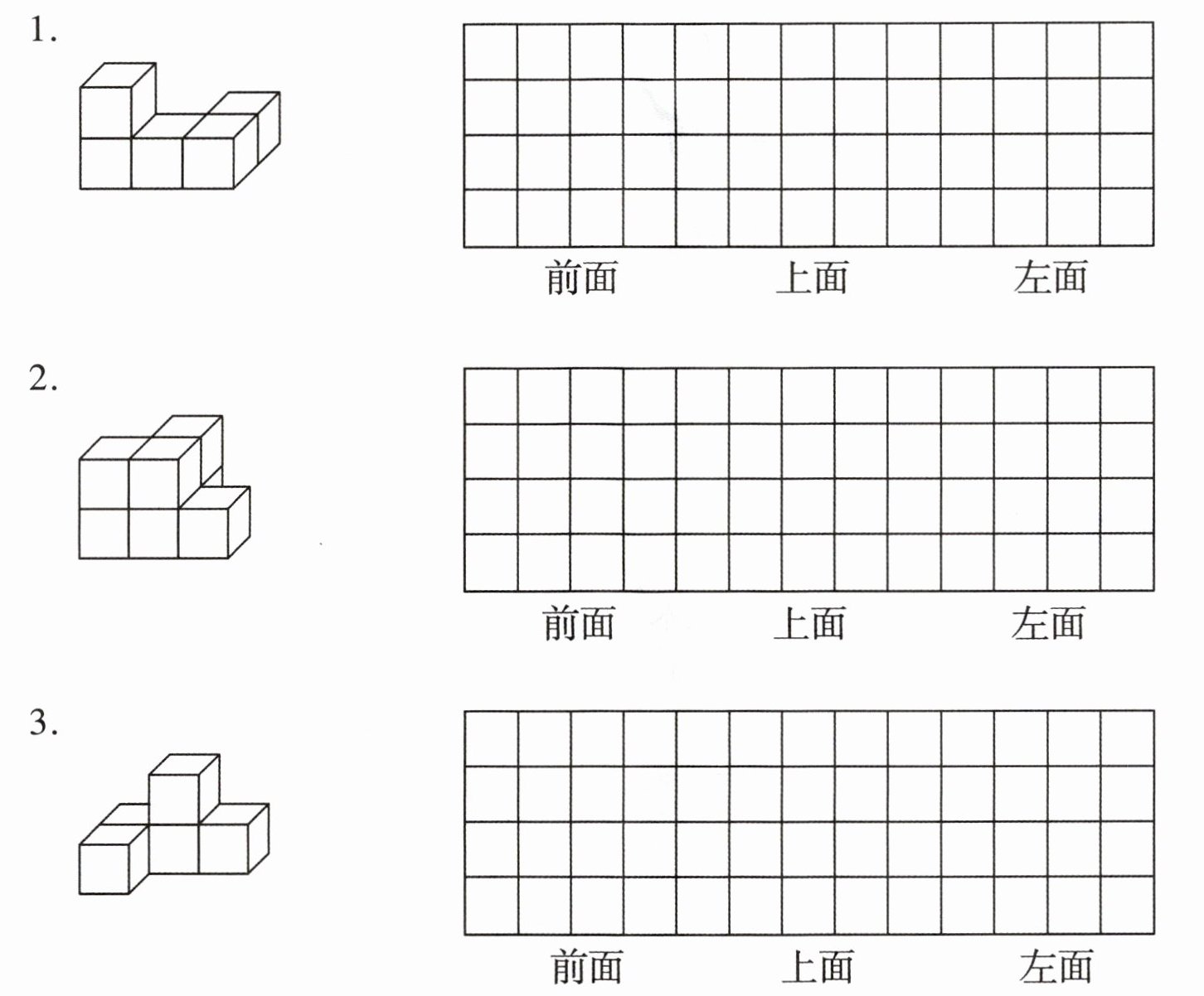五、画出下列物体从前面、上面、左面看到的形状。