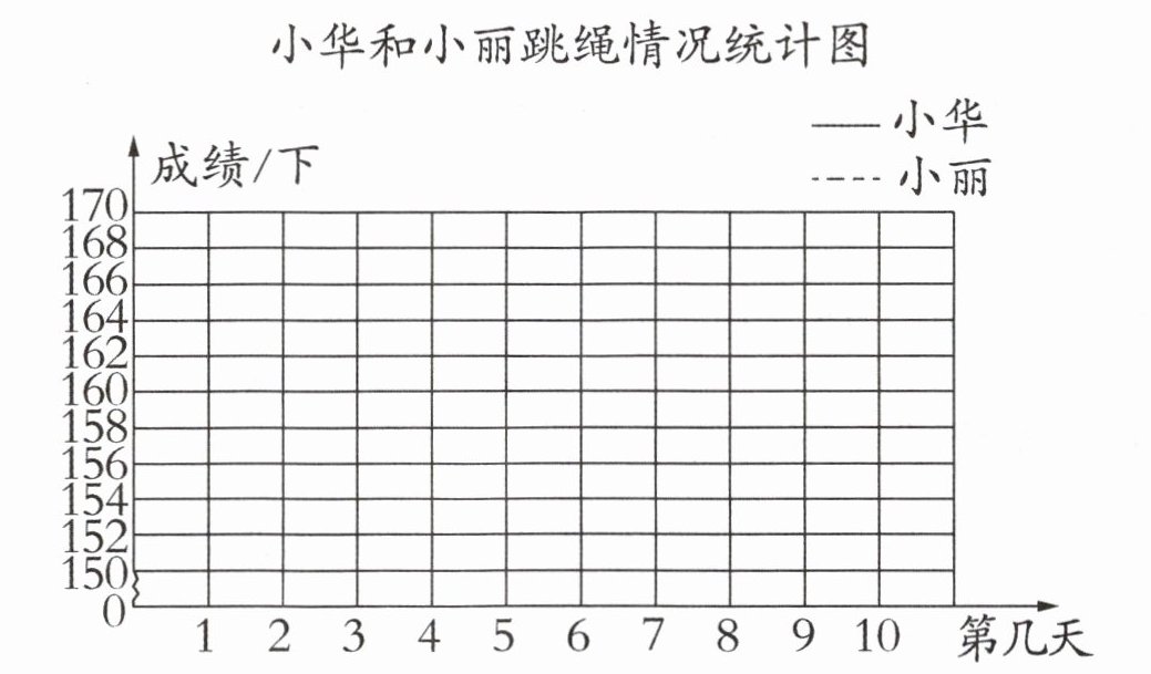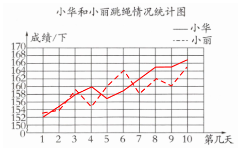 六、小华和小丽为了参加1分钟跳绳比赛提前10天进行训练,每天测试成绩如下: