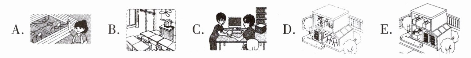 1. This is the library. 2. Is this the teachers' office? 3. That is my classroom. 4. Is it next to Classroom 3? 5. Do you have a computer room?