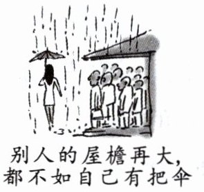 9. 观察下面漫画,“别人的屋檐再大,都不如自己有把伞”,这启示我们无论是学习还是生活,首先要 (