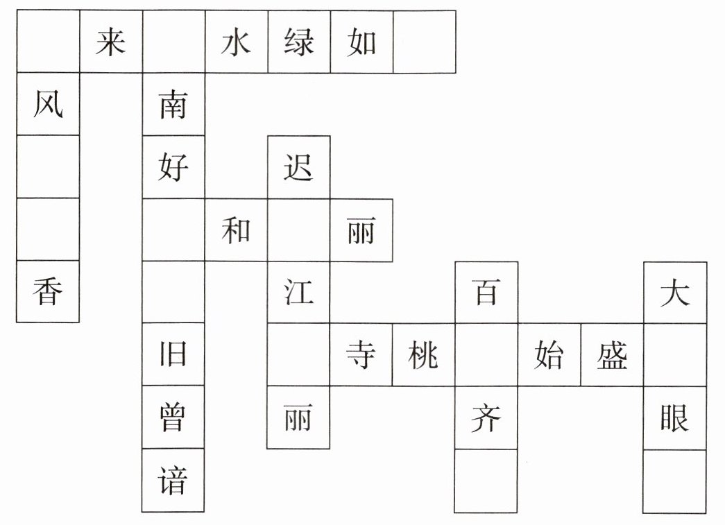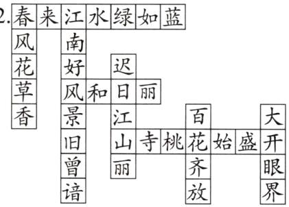 2. 将合适的字填入方格里,使横行、竖行都能凑成合适的词语或诗句,再读一读,积累下来。