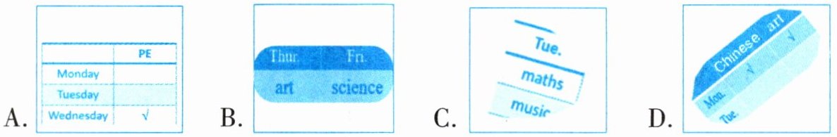 四、Read and choose. 同学们正在谈论自己班的课程表,请你读一读,为下列对话选择相符的图片。