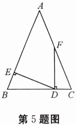 5. 如图,在$△ABC$中,$AB= AC,FD⊥BC,DE⊥AB$,垂足分别为 D,E,$∠AFD= 158^{\circ }$,则$∠EDF= $
