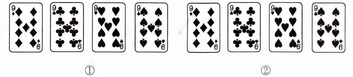 4. 4 张扑克牌按如图①所示放在桌子上,小敏把其中一张旋转 $ 180^{\circ} $后得到的扑克牌如图②所示,那么她所旋转的牌从左数起是 (
