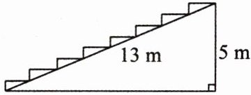 解:由勾股定理得,楼梯水平长度为 $\sqrt{13^2 - 5^2} = 12$ m。