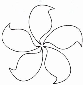 以一个花瓣为基本图案,绕花朵的中心点,顺时针(或逆时针)旋转4次,每次旋转72°得到。