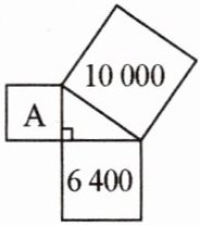 3. 如图,图中的三角形是直角三角形,四边形都是正方形,其中两个正方形的面积分别为6400,10000,则正方形A的面积是 (