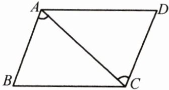 3. 如图,$AB= CD$,且$∠DCA= ∠BAC$,四边形$ABCD$是平行四边形吗?请用不同的方法说明。(至少三种)