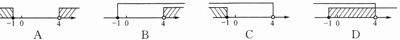 4. 若不等式的解集为$ -1 \leq x < 4 $,则下列表示该解集正确的是 (