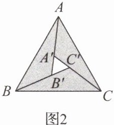 6. 东汉末年的数学家赵爽在《周髀算经》中利用一幅“弦图”给出了勾股定理的证明,后人称其为“赵爽弦图”.如图1,它是由四个全等的直角三角形与一个小正方形拼成的一个大正方形.我们通过类比得到图2,它是由三个全等的钝角三角形与一个小等边三角形$A'B'C'$拼成的一个大等边三角形ABC,若$A'B'= 2,cos∠ABB'= \frac {11}{14}$,则$AB= $ (