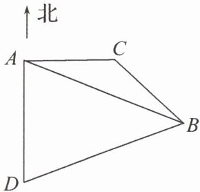 【解析】方案一:在△ABC中,易知$∠CAB = 90^{\circ}-∠DAB = 30^{\circ}$,$∠ACB = 120^{\circ}$,$AB = 800km$,由$\frac{BC}{\sin∠CAB}=\frac{AB}{\sin∠ACB}$,得$BC=\frac{800\sqrt{3}}{3}km$.且△ABC为等腰三角形,所以$AC + BC = 2BC=\frac{1600\sqrt{3}}{3}(km)$.