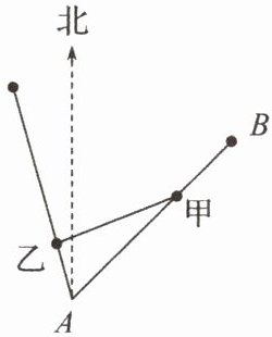 16. 已知海岛B在海岛A北偏东$45^{\circ }$,且与A相距20海里,船甲从海岛B以2海里/小时的速度沿直线向海岛A移动,同时船乙从海岛A以4海里/小时的速度沿直线向北偏西$15^{\circ }$方向移动.