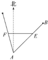 (1)得,$AE = 20 - 2t$,$AF = 4t$,由余弦定理得:$EF^{2}=AE^{2}+AF^{2}-2AE\cdot AF\cos∠EAF=(20 - 2t)^{2}+(4t)^{2}-2×(20 - 2t)×4t×\frac{1}{2}=28(t - \frac{20}{7})^{2}+\frac{1200}{7}$.由$0<t<10$,得当$t=\frac{20}{7}$时,$EF_{\min}=\frac{20\sqrt{21}}{7}$海里.答:甲、乙两船的最短距离为$\frac{20\sqrt{21}}{7}$海里.
