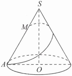 (2)绳子最短时,在展开图中作 $SR\perp AM$,垂足为 $R$,则 $SR$ 的长度为顶点 $S$ 到绳子的最短距离。