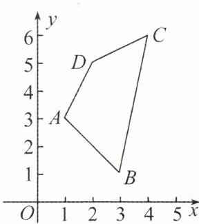 14. 如图所示,在平面直角坐标系中,各点坐标为$O(0,0),A(1,3),B(3,1),C(4,6),D(2,5)$. 试画出四边形$ABCD$的直观图.