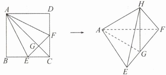 6.如图,在正方形$ABCD$中,$E,F分别是BC$,$CD$的中点,$G是EF$的中点,现在沿$AE,AF及EF$把这个正方形折成一个空间图形,使$B,C,D$三点重合,重合后的点记为$H$,那么,在这个空间图形中必有(